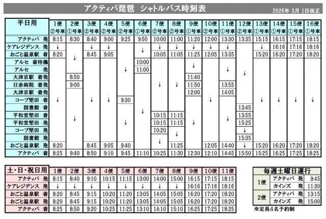アクティバ琵琶より巡回しております【定期シャトルバス】につきまして、